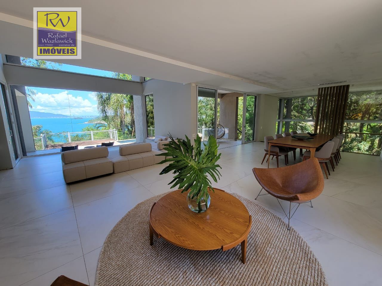 - Estar com três ambientes e sala com pé direito duplo vista mar