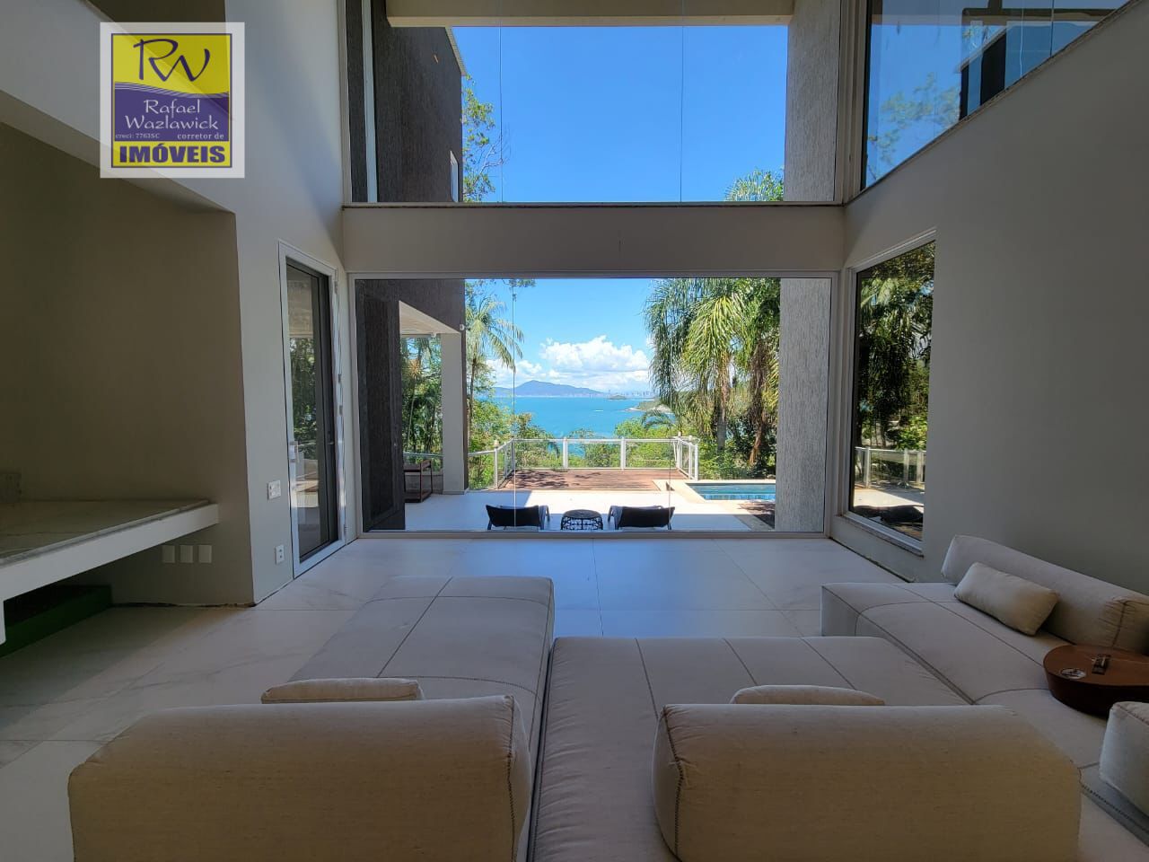 - Piscina adulto com profundidade de até 2,5m de altura e vidro abaixo d’água vista mar.
